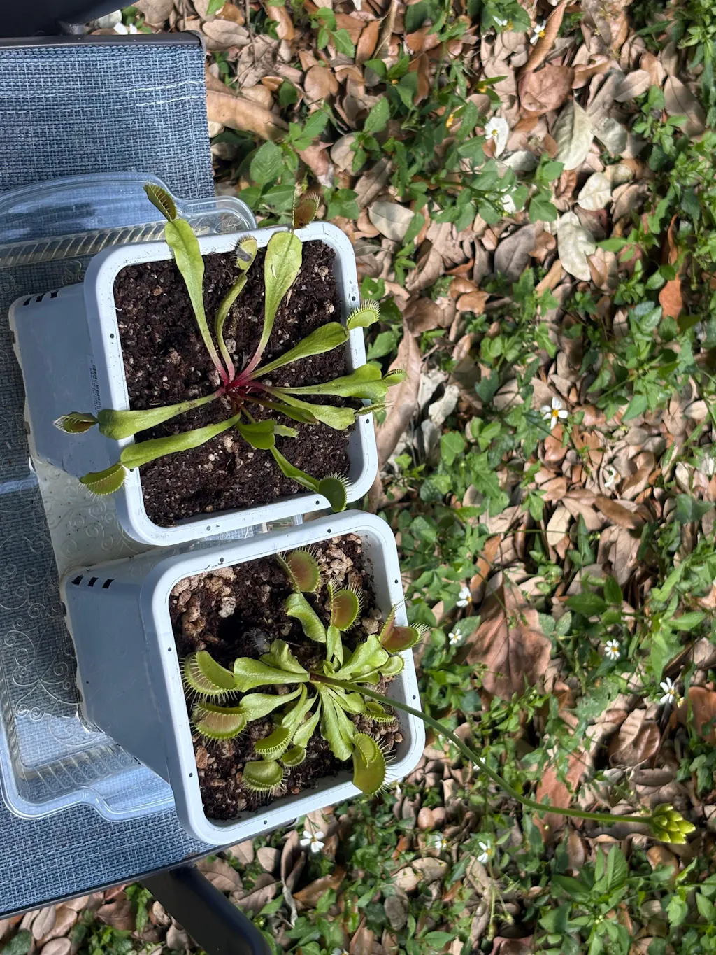 Flytraps have been so happy with the new soil❤️ they made this weird long branch stem thing but in loving what it’s turning out to be😂